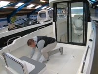 God beskyttelse i det rummelige cockpit, hvor bådens høje kanter sikrer mindre passagerer fra at kunne falde overbord. Cockpittet er placeret asymmetrisk ombord, hvorved adgangen til siddepladserne i front lettes. Med 4 stangholdere som standard indbyder båden til en god fangst, og mon ikke den integrerede 45l isboks kan holde fangsten kølig til I kommer i land?