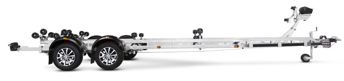 Bremset trailer med to aksler til både op til 26 fod. Udstyret med et svejst og forstærket V-formet chassis. Dobbelte superruller for optimal beskyttelse af båden præcist der, hvor skroget er stærkest. Varmgalvaniseret chassis og vandtætte lejer for længere levetid og maksimal beskyttelse mod rust. Kablerne ligger beskyttet i trailerens chassis. Lukket spil og justerbart spiltårn, som er monteret med en ekstra sikkerhedskæde. Justerbare teleskoplys gør det nemmere at bruge bådtraileren, hvilket giver større fleksibilitet, bekvemmelighed og sikkerhed på vejen. Fuldt vandtæt lampenhed inklusive stik og kabel. Traileren på billedet kan være vist med ekstraudstyr.
