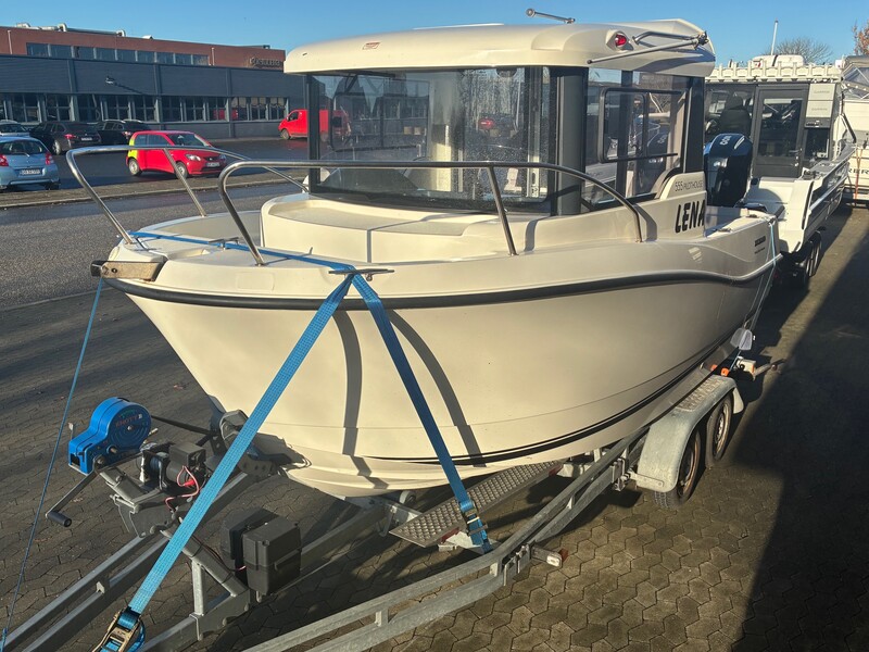 Fiskepakke m/agnbrønd, søvandspumpe, ekstra stangholdere, hynder i kabine og cockpit samt vinduesviskere, badestige, horn, 2 stk. oppustelige redningsveste, ekstra redningsveste samt fender og fortøjninger. M/ekstra motorbeslag hvor der sidder en Mercury F6 hk 4-takt som reserve- og hjælpemotor som er fra 2022.